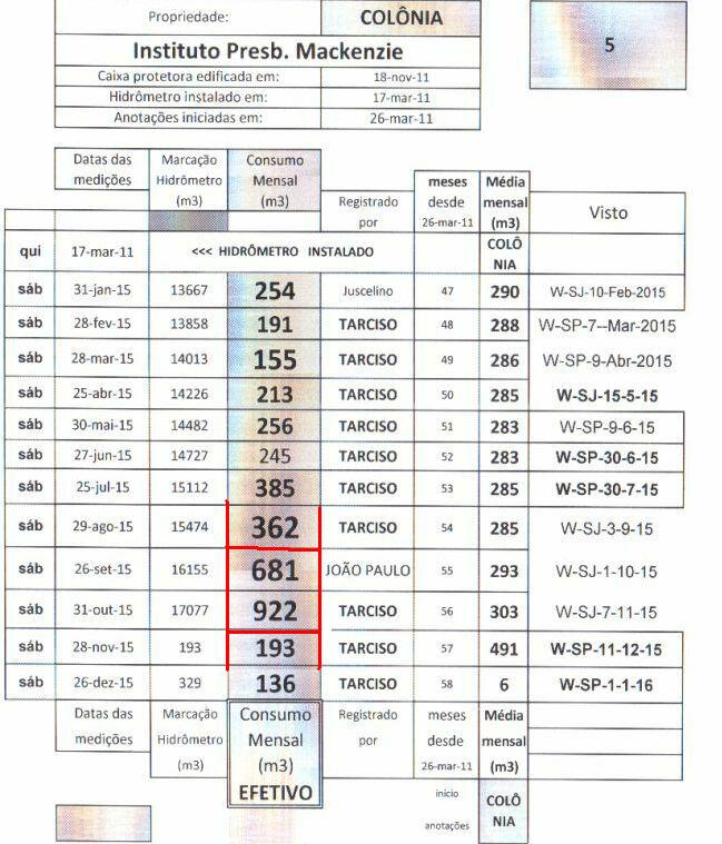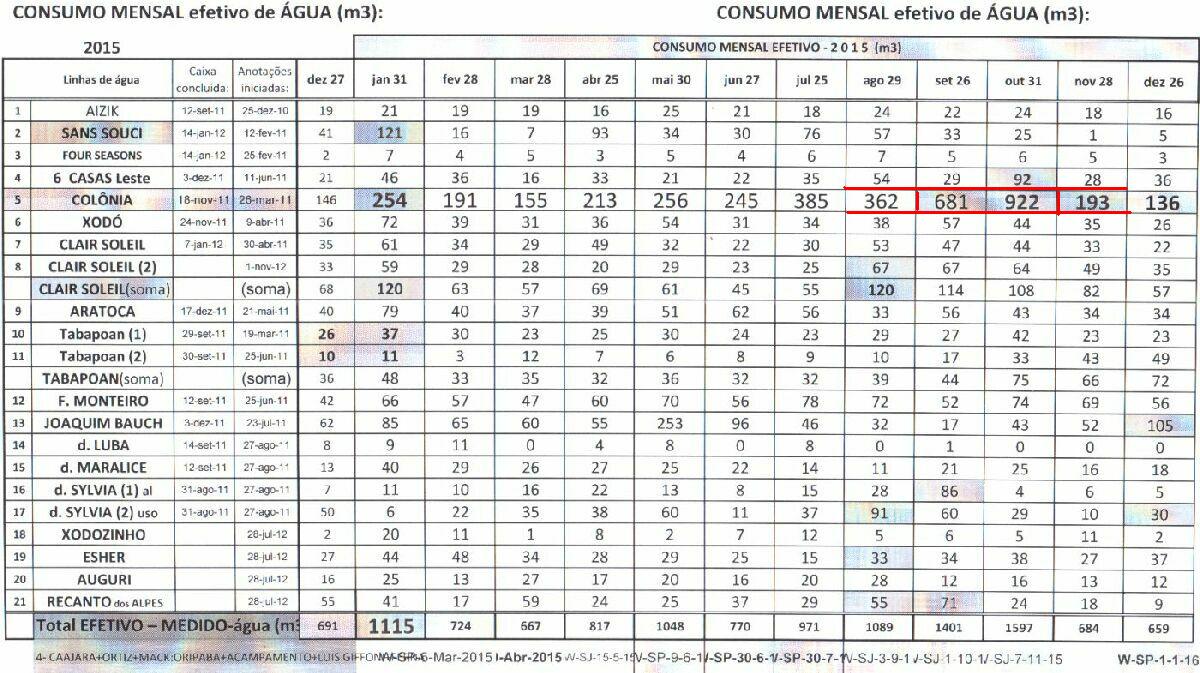 consumo de água Colonia, mes a mes Ano - 2015